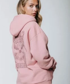 Colourful Rebel Art Eagle Hoodie Roze Dames – Oversized Fit – Polyester – XS