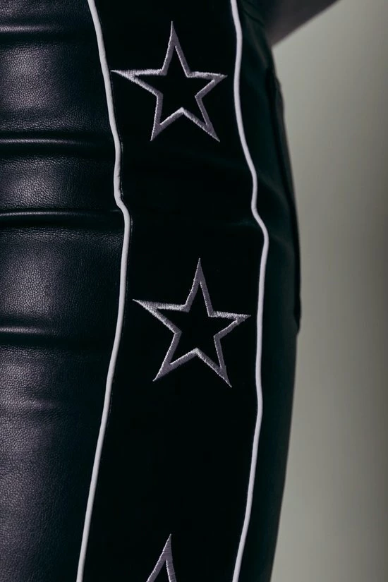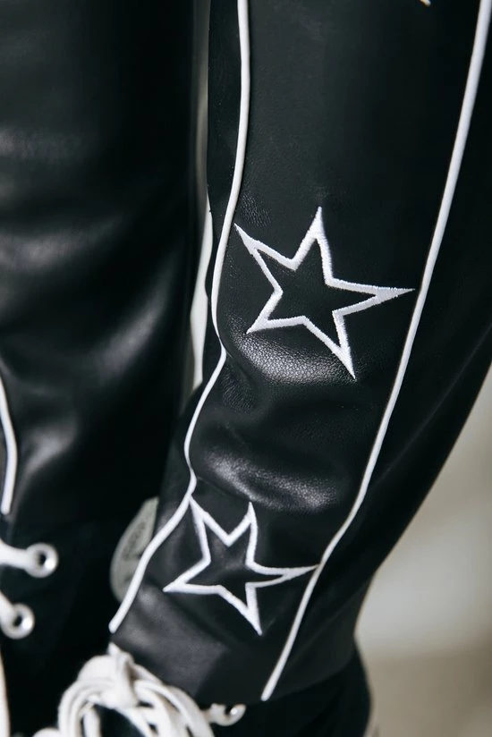 Fivepocket broekNormale tailleNormale lengteGulp met ritssluiting en knoopMet sterren aan de zijkantSterren dessin100% katoenNon stretch stofHandwas koud, niet in de droger, plat laten drogen, op lage temperatuur strijken of stomenModel is 1.70m en draagt XS