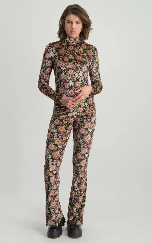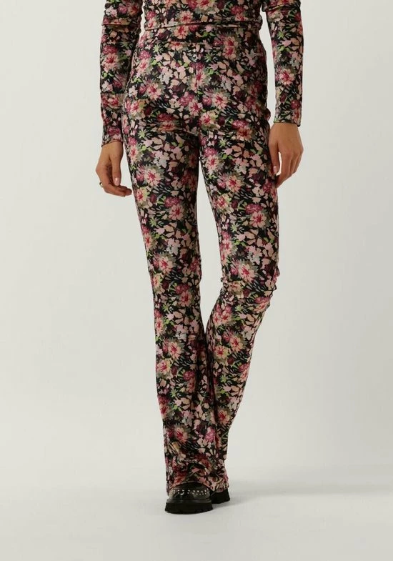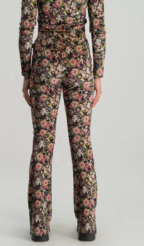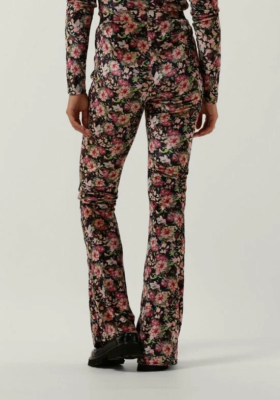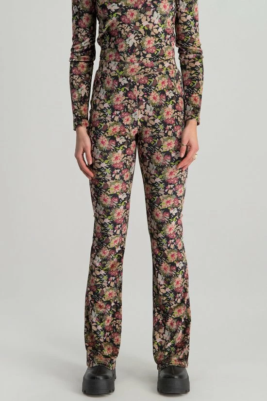 Flare broekVan strak naar uitlopende pijpHoge taille /highwaistNormale lengteElastieke tailleCombineer met de Neyo Flower Velvet voor een complete lookBloemen dessin95% polyester, 5% elastaneStretch stofBinnenstebuiten machinewas 30°Model is 1.70m en draagt XS