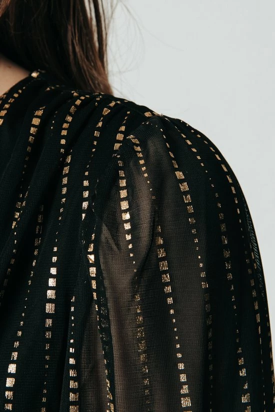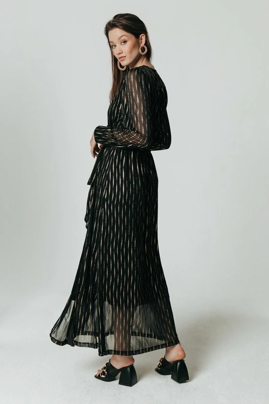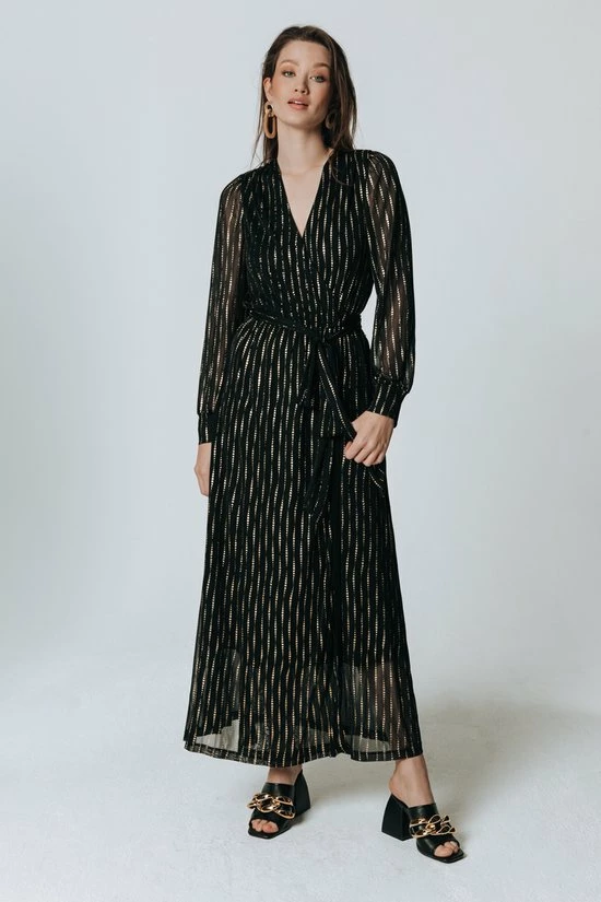 Overslag jurkBasic fitLange lengteLange mouwWrap sluiting zijkant95% polyester, 5% elastane, MeshStretch stofWash by hand/ No tumble dry/ Flat dry/ Do not wring/ No bleach / Do not ironModel is 1.70m en draagt S