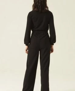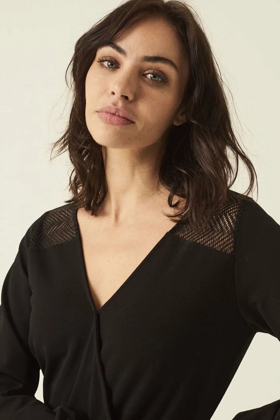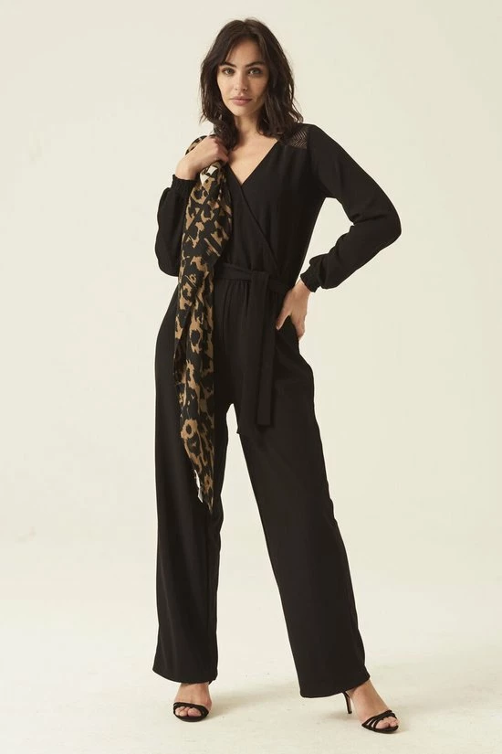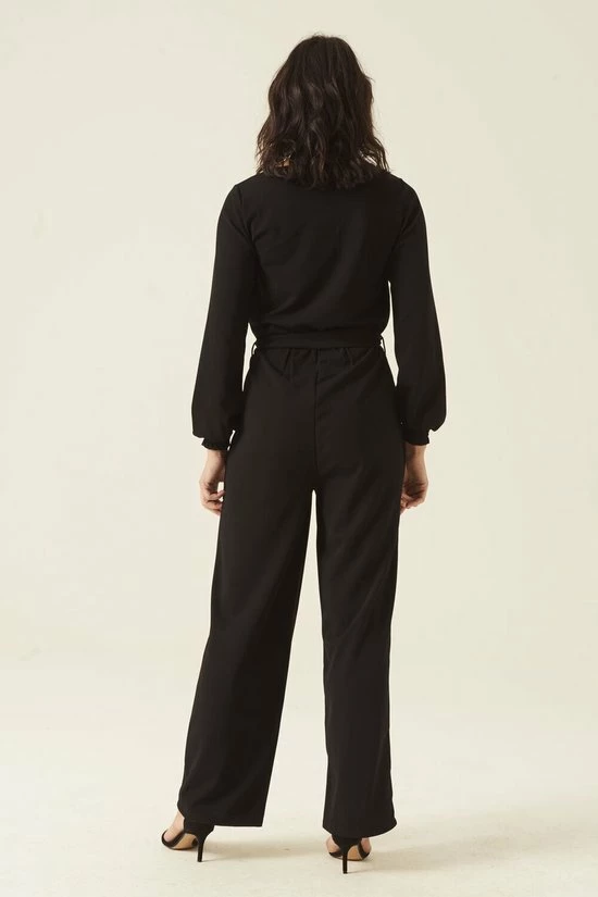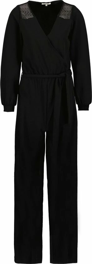 Jumpsuit met opengewerkte schouder details. Deze jumpsuit heeft lange mouwen, een V-hals met drukknoop, een tailleceintuur en een regular fit. Dit item is gemaat van 95% polyester en 5% elastaan.