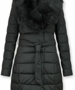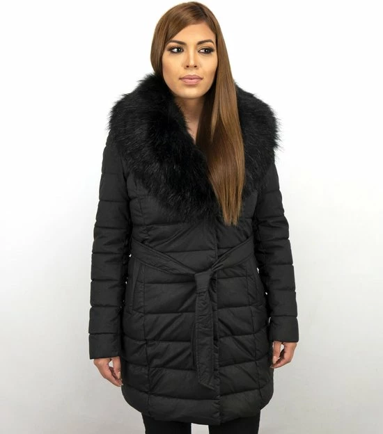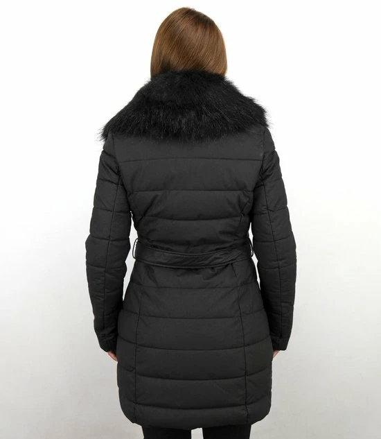 Gentile Bellini Lange Parka Dames Winterjas – Met Zwarte Faux Bontkraag – Zwart Jassen Dames Dames Jas