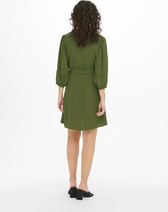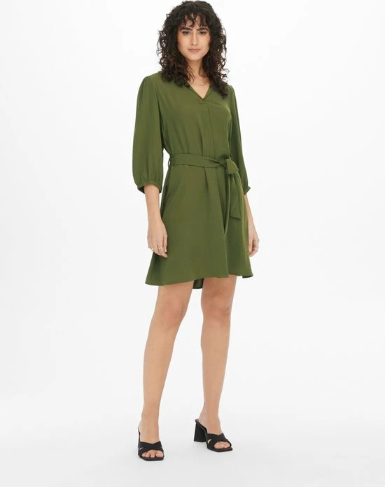 JDY jurk – 3 kwart mouw – Pofmouw – Ceintuur in de taille – Normale pasvorm – V-hals