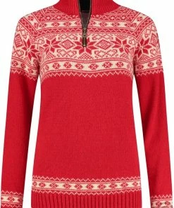 Noorse dames pullover in Setesdals-design van 100% zuivere wol, rood