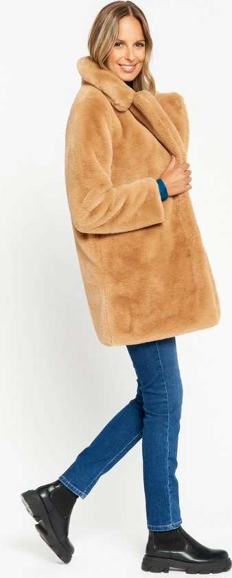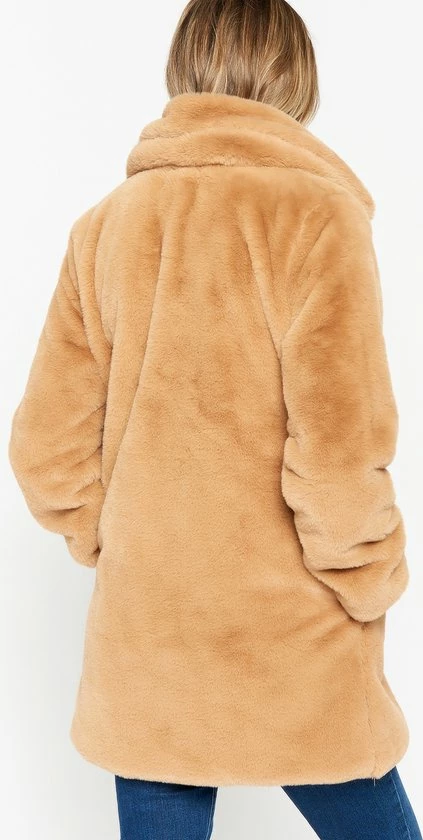LOLALIZA Lange Faux Fur Jas – Camel – Maat S