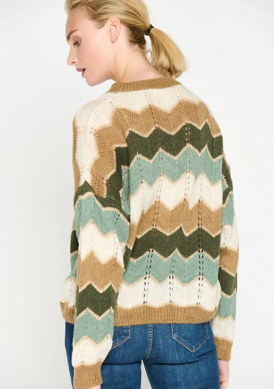 LOLALIZA Trui Met Zigzagpatroon – Khaki – Maat L