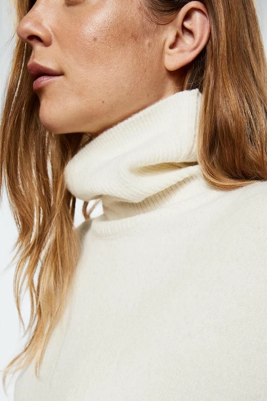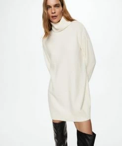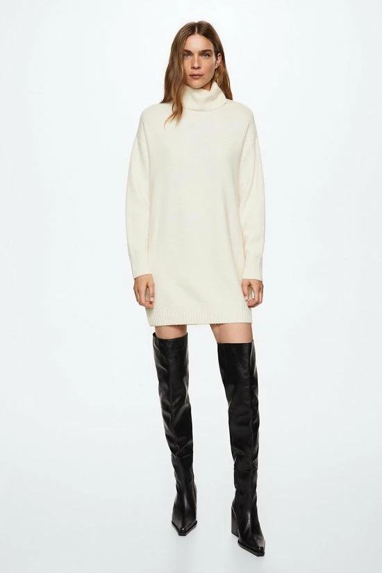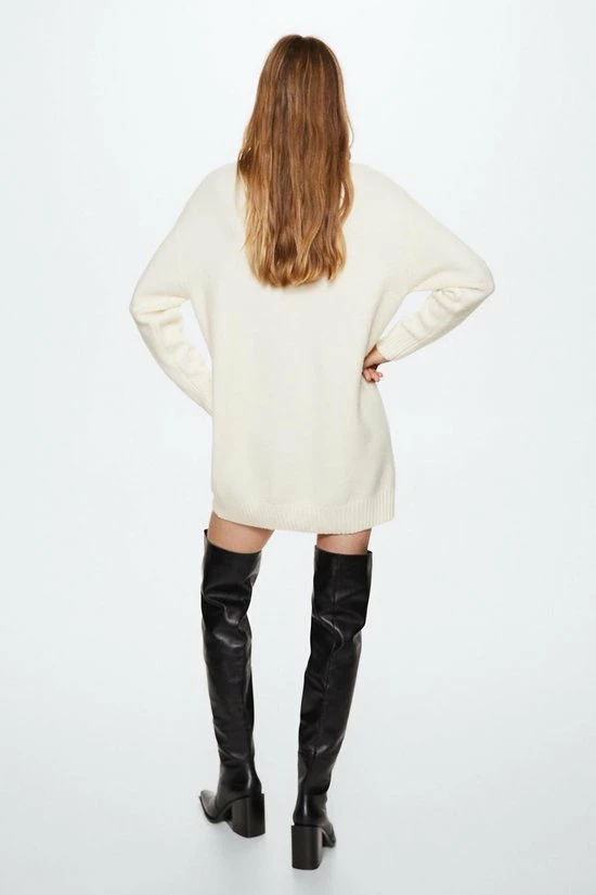 Gebreide jurk van Mango gemaakt van een wolblend. Dit model heeft lange mouwen en een colkraag. De ruime jurk is afgewerkt met ribgebreide boorden. De totale lengte is 78 cm bij maat S.