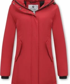 Deze lange parka jas voor dames zonder bontkraag is een absolute verschijning en vooral in de kleur rood. De jas sluit prima om uw lichaam door de slim fit pasvorm en houdt uw lekker warm.