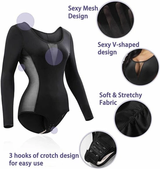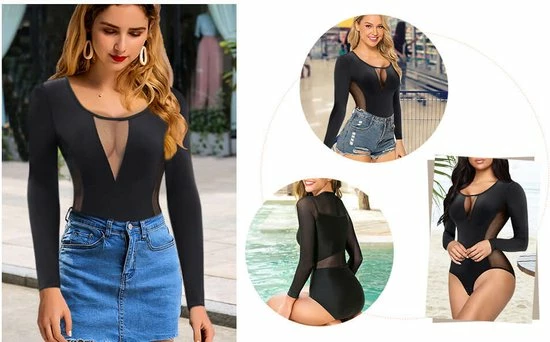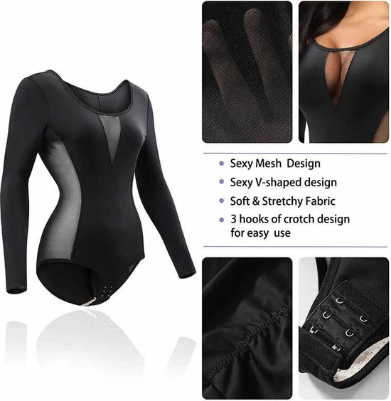 Long sleeve bodysuit- Mesh Sheer design makes you look more flattering, bodycon slim fit will show you sexy curves. Easily create a charming carves for you. Soft and strechy fabric. The 3 hooks on the crotch are design for easy use.