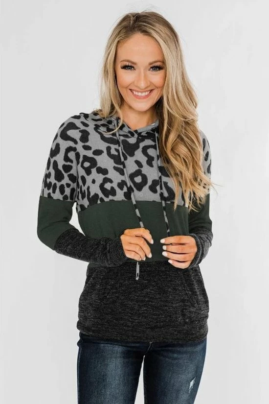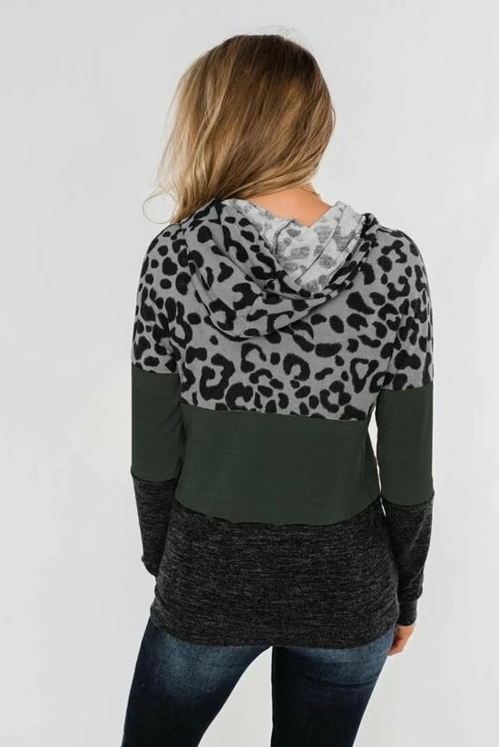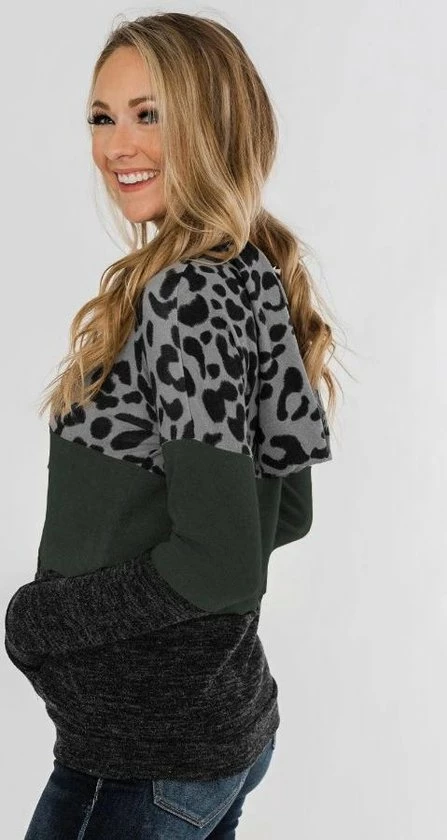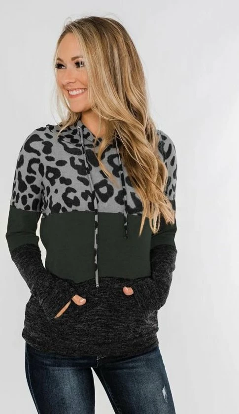 Hoodie trui dames luipaardprint groen