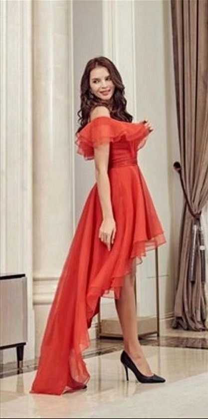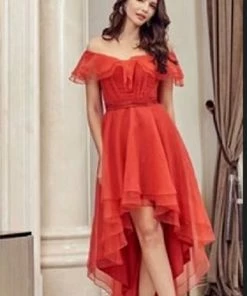 Mooie jurk voor de feestdagen, de achterkant is langer dan de voorkant, rode kleur