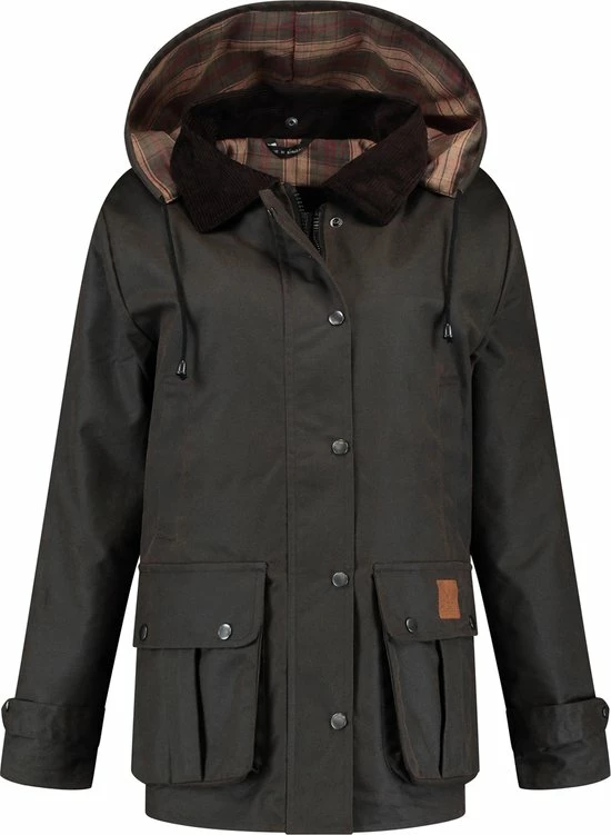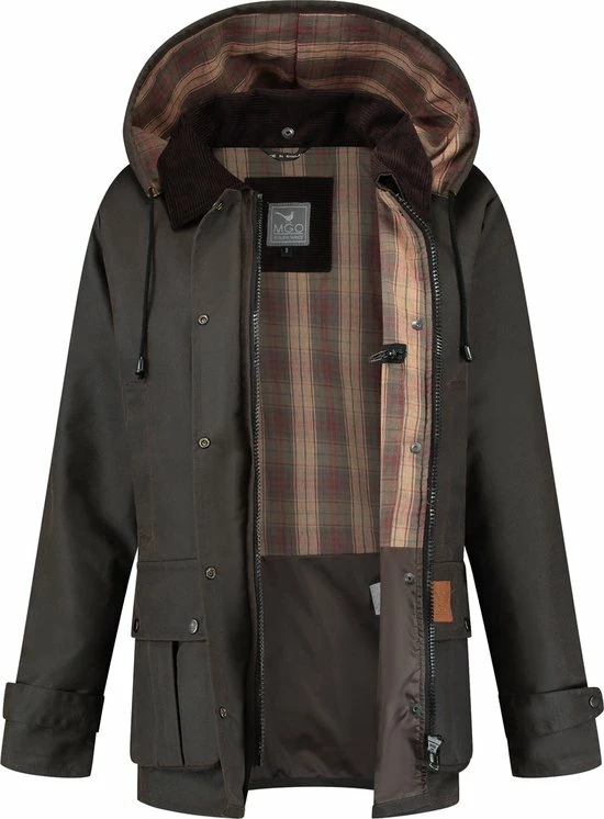 Deze waxjas valt aan de ruime kant, zoals dat van een traditionele waxjas verwacht wordt. Doordat de jas gewaxt is, houdt zede wind en regen buiten. Ze is voorzien van een binnenzak met rits, een ruimvallende capuchon enwindstoppers in demouwen.Een waxjas heeft af en toe een klein onderhoud nodig op de plekken waar de jas het meeste wrijving heeft of hetmeeste te verduren heeft van de zon. Hiervoor is er bij ons MGO waxspray verkrijgbaar. U kunt vele jaren plezier hebben vandeze jas. Tip! Laat hem altijd goed drogen, maar uit de buurt bij de verwarming.