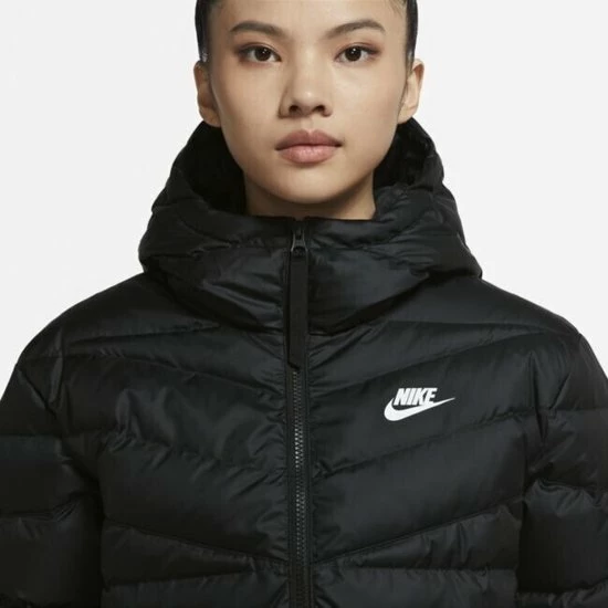 Donzen isolatievlak op de borst heeft de iconische vorm van de Windrunner. Het via transferdruk aangebracht Futura logo op de borst heeft een vlakke, matte afwerking.