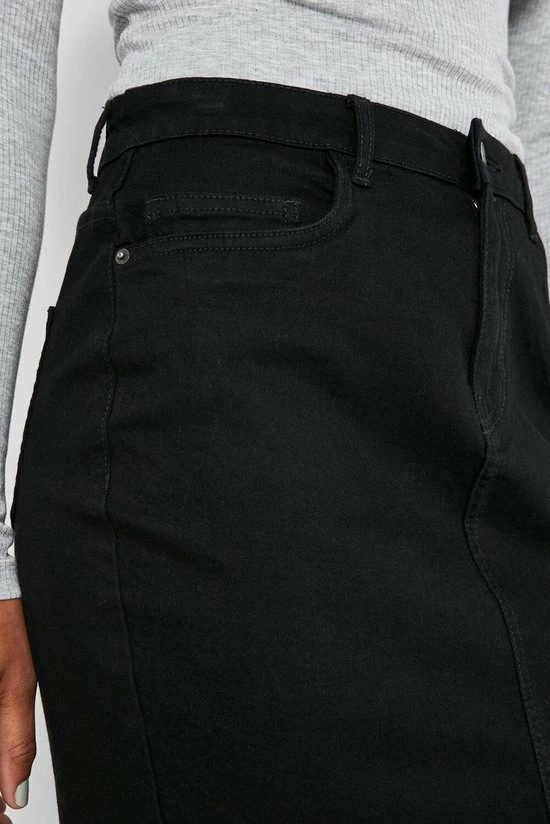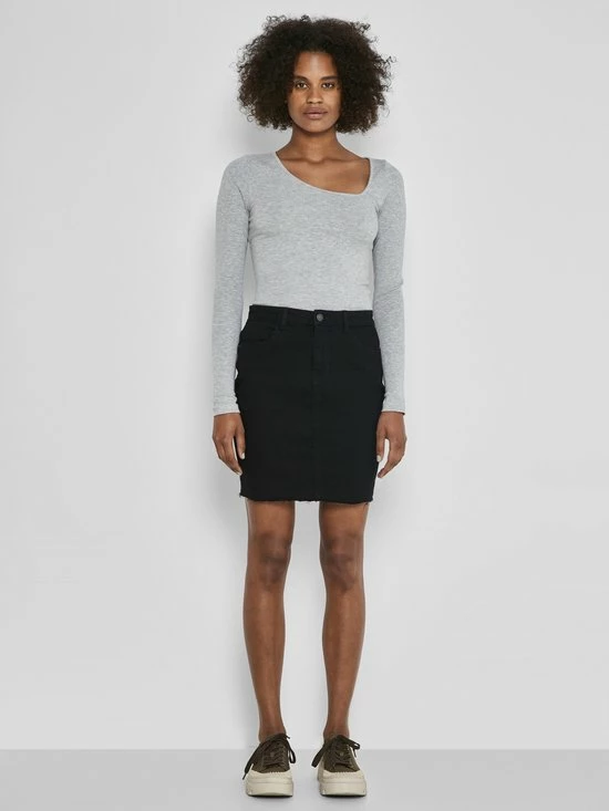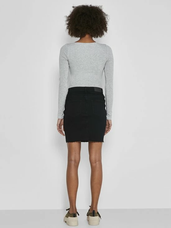 NOISY MAY kort, zwart denim rokje van 79% katoen, 20% gerecycled katoen en 1% Elastaan.
