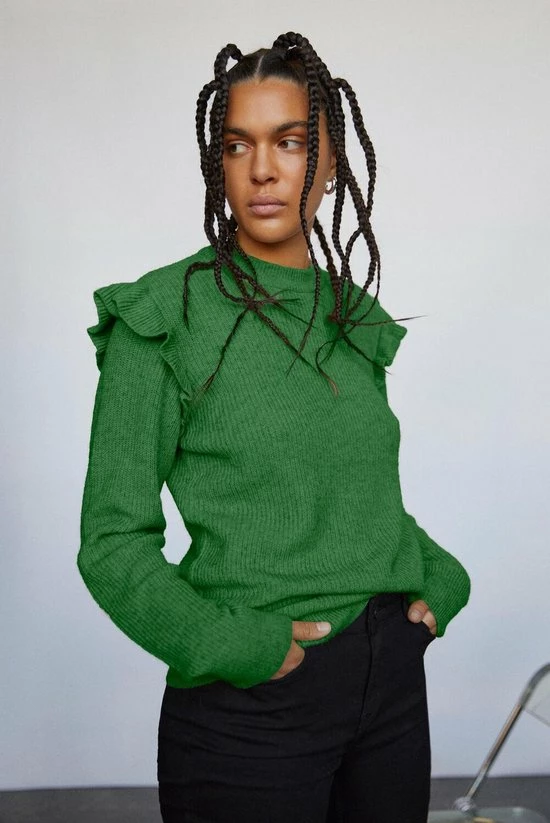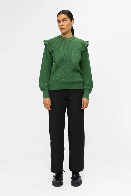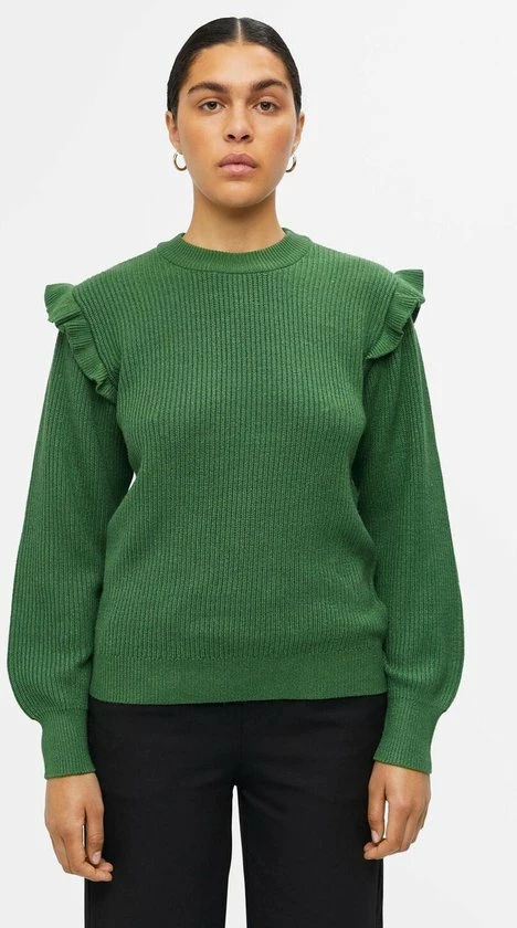 Object Trui Objmalena L/s Ruffle Pullover Noos 23039233 Artichoke Green/melange Dames Maat – M