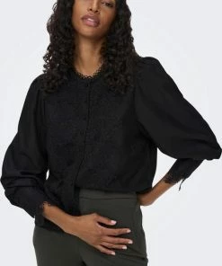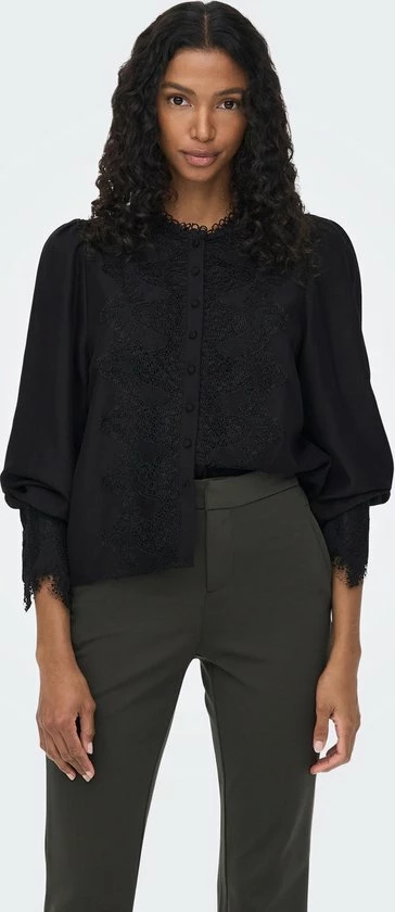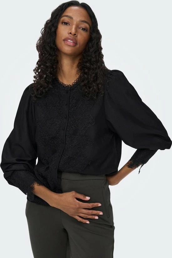 Only Blouse Onllola Ls Lace Insert Top Wvn 15268020 Black Dames Maat – M