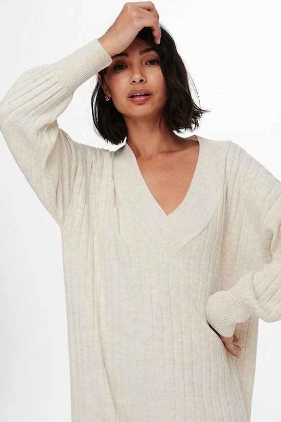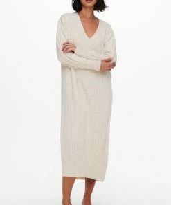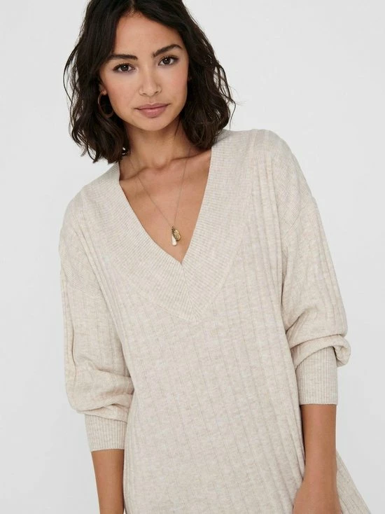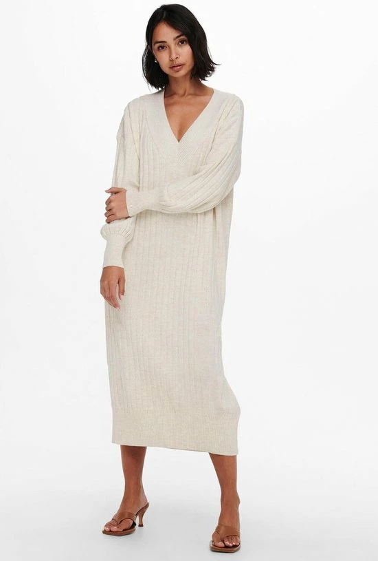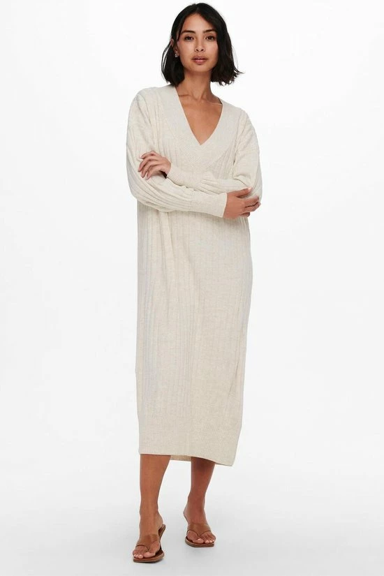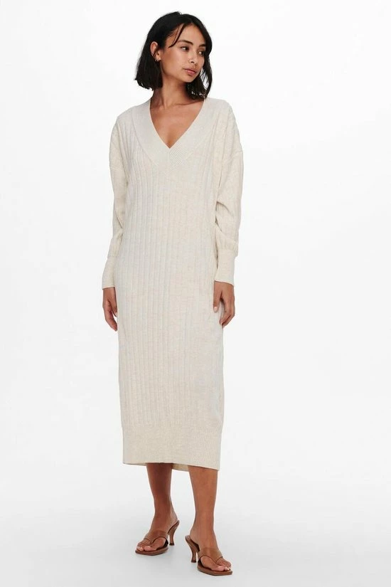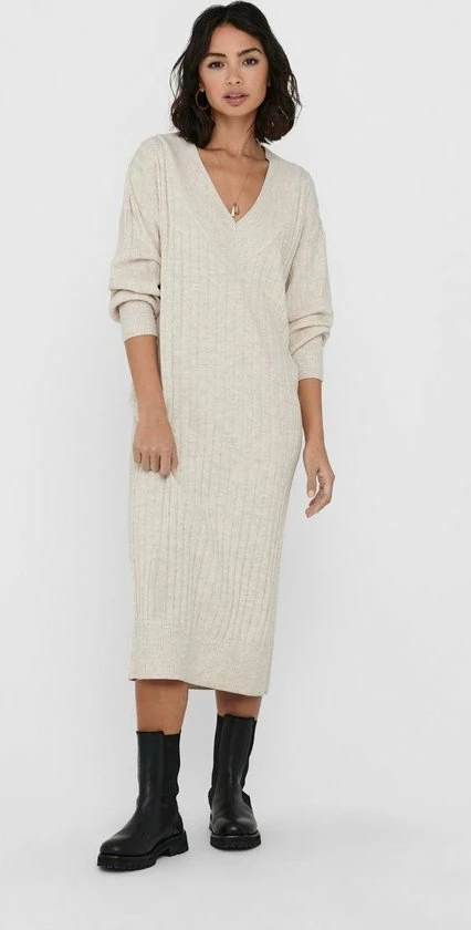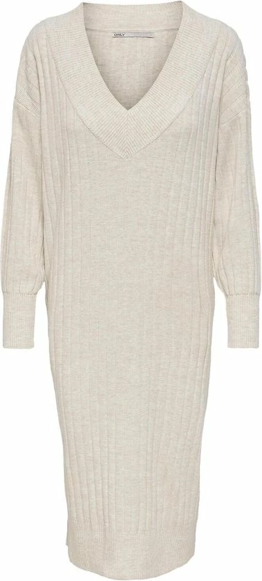 Only Jurk Onlnew Tessa L/s Midi V Dress Knt Noos 15236372 Pumice Stone/w. Melange Dames Maat – XL