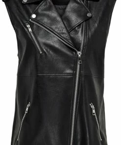 Oversized gilet van imitatieleer. Volledig gevoerd met 100% polyester. Schuine rits aan de voorzijde en revers met drukknopen. Twee zijzakken en één borstzak met ritssluiting. Riem en gesp aan de onderkant met belt loops