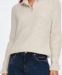 Only Trui Onlleise Freya Ls Zip High Neck Pullover 15268818 Birch/melange Dames Maat – S