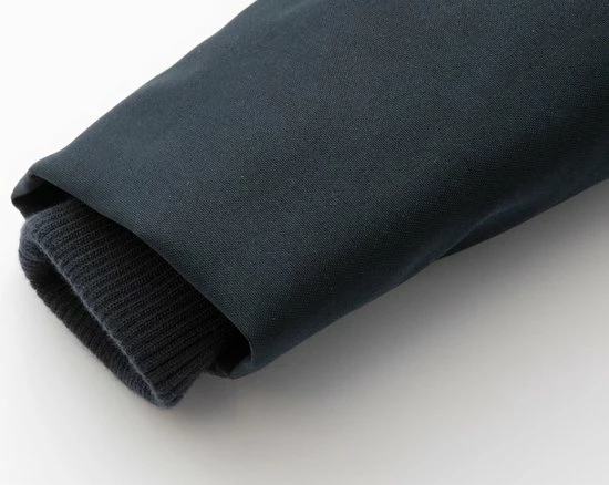 De jas is waterafstotend en winddicht en de uiteinden mouwen zijn voorzien van een gebreide rib boord die de wind buiten houd.