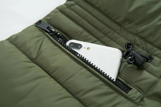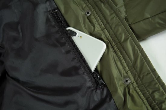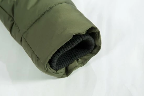 De jas is waterafstotend en winddicht en de uiteinden mouwen zijn voorzien van een gebreide rib boord die de wind buiten houd.