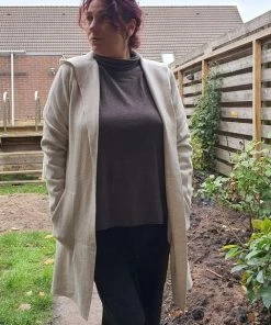 Puro Lino Warme Lange Vest In BEIGE Kleur Met Steek Zakken En Capuchon – Dames Vest – Maat 40/42