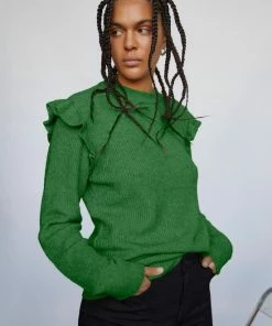 Object Trui Objmalena L/s Ruffle Pullover Noos 23039233 Artichoke Green/melange Dames Maat – M