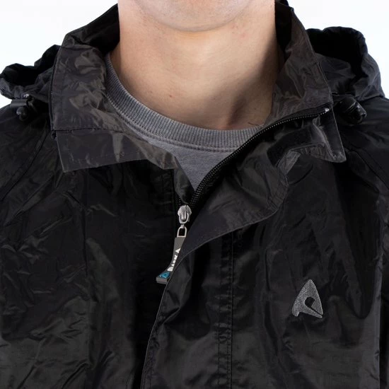 - capuchon in de kraag met elastisch koord met stoppers in de capuchon en in de zoom