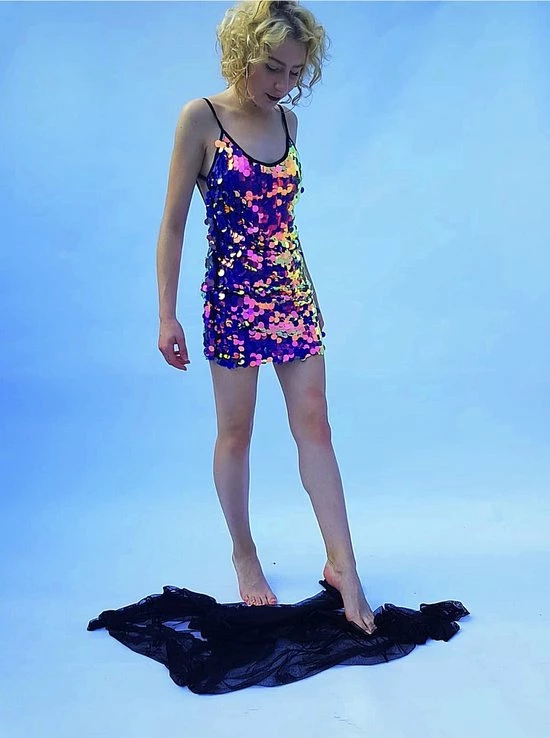 Night Angel laat je eindelijk schitteren zoals je het verdient! Sprankelende regenboog-lovertjes die van kleur veranderen onder invloed van de lichtinstelling creëren een buitengewone look en trekken veel aandacht van het publiek! Night Angel is gemaakt van een hoogwaardige stof geborduurde met lovertjes die exceptionele karakter een unieke shine heeft. Mini-jurk met dunne bandjes en open rug is geschikt voor allerlei gelegenheden! Lovertjes zijn een van de heetste trends van het seizoen dus kies zelf uit bij welke gebeurtenis wil je schitteren!!! Een echte aanrader!