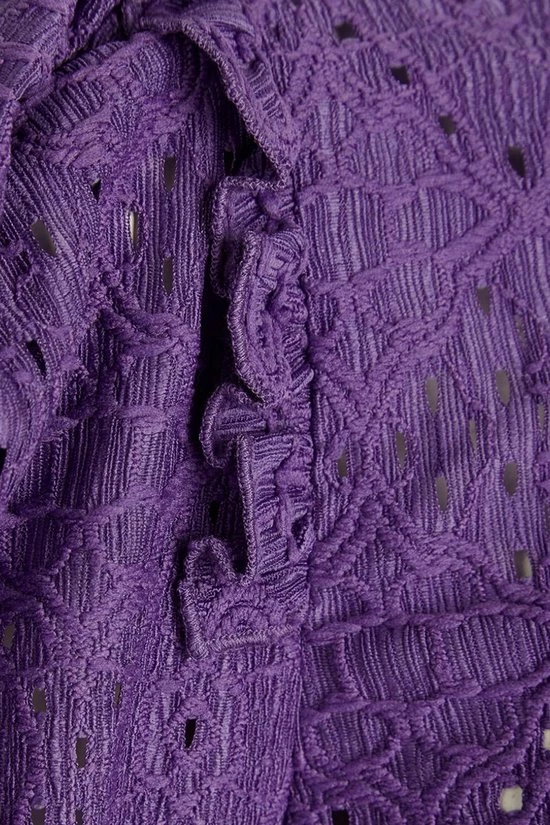 Blouse van SisterSpoint met lange mouwen en een wat hogere ronde hals. Deze kanten blouse is bij de mouwaanzet voorzien van ruches en heeft iets een pofmouw.