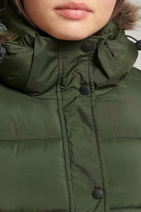 - Capuchon: verstelbare, vaste capuchon met een afneembare rand van imitatiebont