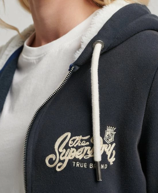 - Manchetten: geribbelde manchetten aan de mouwen en zoom