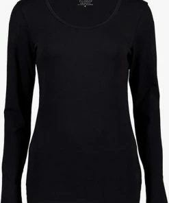 Een basic die altijd goed van pas komt! Dit zwarte shirt met lange mouwen voor dames heeft een ronde hals en een mooie, aansluitende pasvorm. Gemaakt van 95% katoen en 5% elastaan. Nu 2 shirtjes voor €16, geldig op artikelen met een rood 2 voor 16 actielabel.