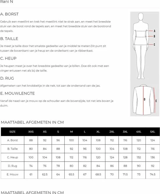 - Maatbepaling: zie maat-indicatie in de tekst hierboven om je maat te bepalen