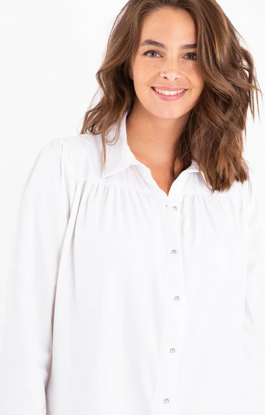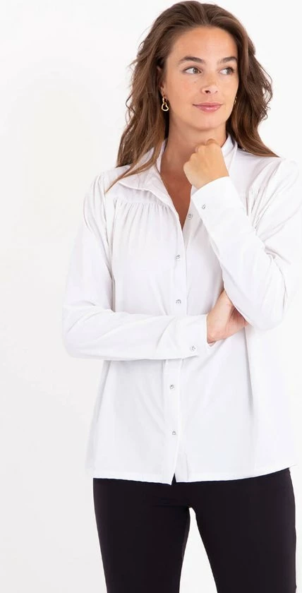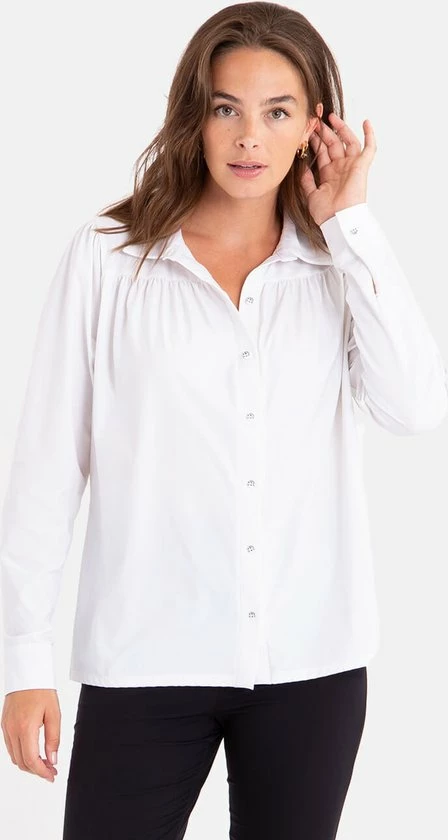 Witte Blouse Van Je M’appelle – Dames – Travelstof – Maat S – 6 Maten Beschikbaar